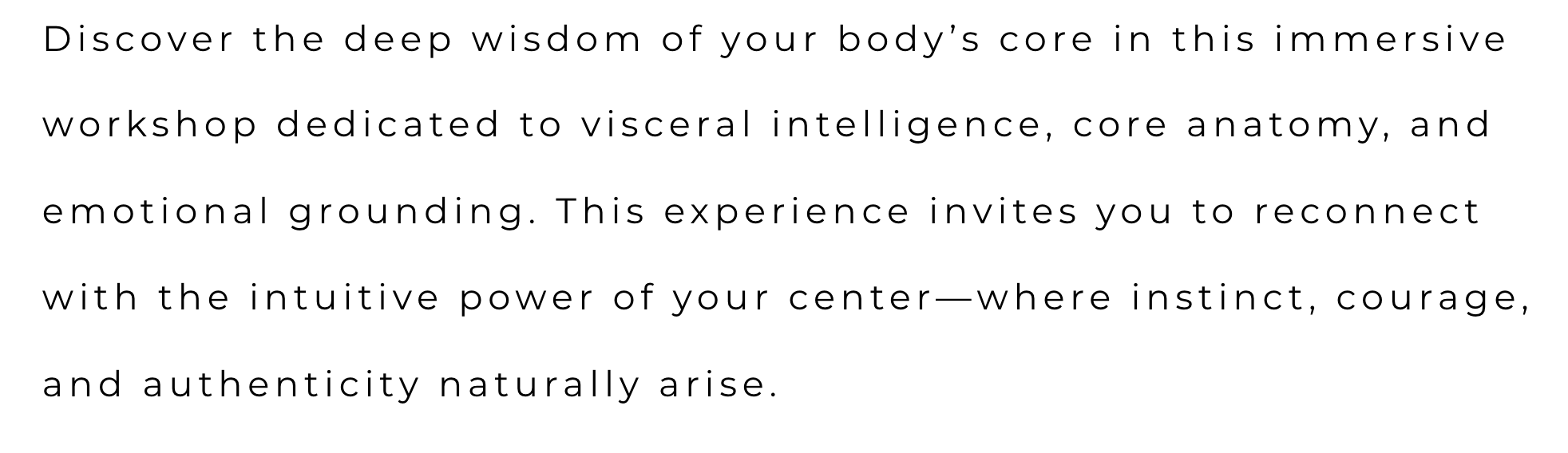 Registration fees are non-refundable. Should you cancel your registration more than 30 days before the event start date, the registration fee will be credited to your Nia store credit account. Should you cancel your registration less than 30 days before the event start date, you will lose your deposit. If the event is canceled, you are entitled to a full refund.
